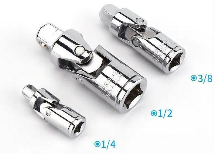 2、 萬象節(jié):我們都知道套筒是直的,并沒有角度,在實際使用套筒的場合里,有些需要一些傾斜角度才能正常受力,這個時候就需要用到萬向節(jié)。萬向節(jié)顧名思義就是可以轉(zhuǎn)換方向,一般更大角度可以到45度。