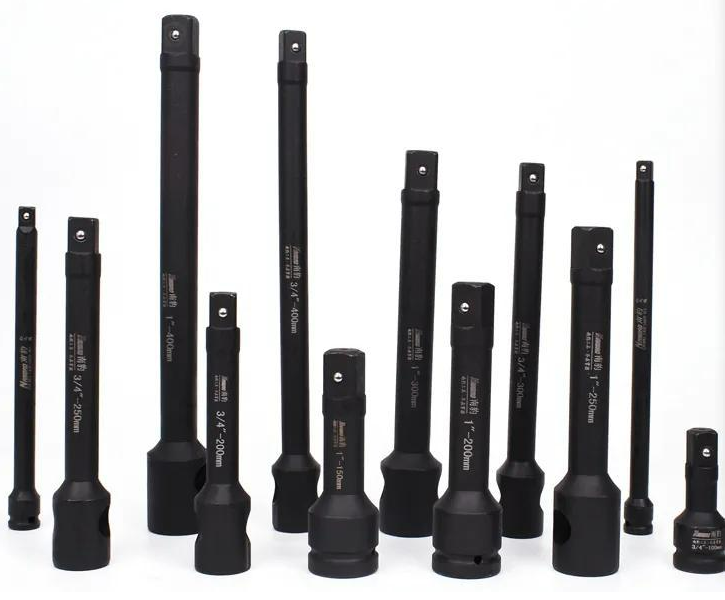 1、 套筒連接桿(簡稱接桿):上篇我們講到一般套筒最長的長度也只有80mm左右,假如我們在實際使用中,需要被拆的螺絲其空間或深度超過80mm怎么辦呢,這個時候就需要在套筒上加一個接桿。一般接桿的以長度來命名其規(guī)格,最常用的接桿規(guī)格有:3”(75mm)、5”(125mm)、10”(250mm).根據(jù)接桿的方頭尺寸也分6.3mm系列(1/4”系列)、10mm系列(3/8”系列)、12.5mm系列(1/2”系列)、19mm系列(3/4”系列)、25mm系列(1/”系列),使用時跟套筒規(guī)格一一對應(yīng)即可。