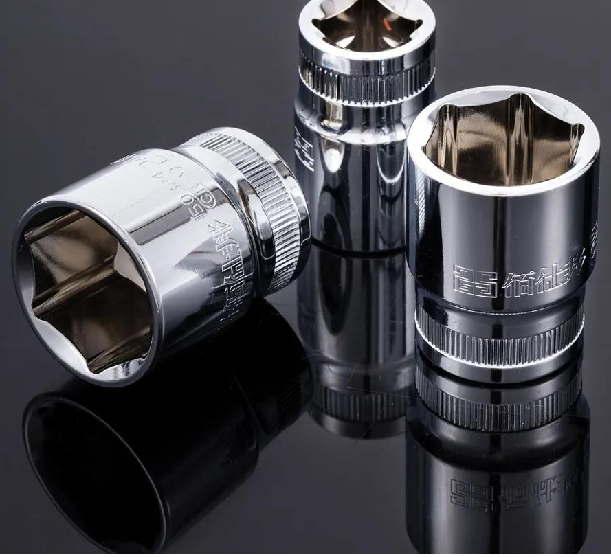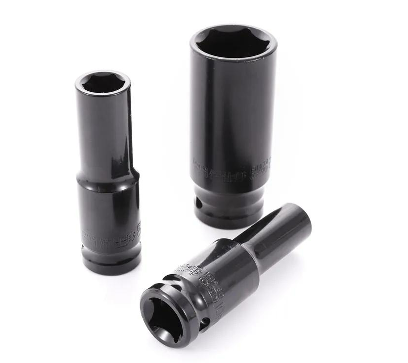 5、 根據套筒的使用頻率和使用的場合來分一般有手動套筒(配合棘輪扳手手動使用的)和風動套筒(配合風炮或電動工具使用的)。手動套筒表面處理一般為鍍鉻的,也就是說白色的,材質一般為50BV30;風動套筒表面處理一般為電泳或發黑,也就是說黑色的,材質一般為鉻鉬鋼,由此不難看出,同一種使用條件下風動套筒的使用壽命更久一些。